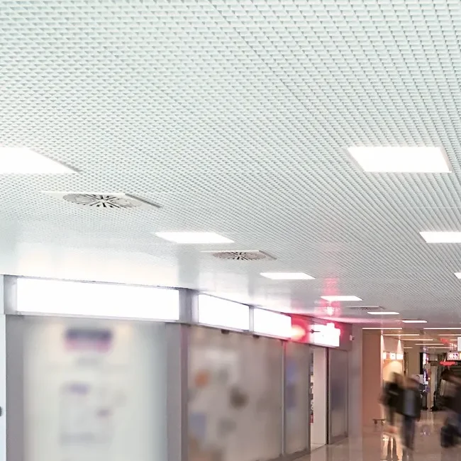This open cell panels laid in visible T15 structure, is generally selected for t-grid installation system combined with and high open area which which reduces the fire load.